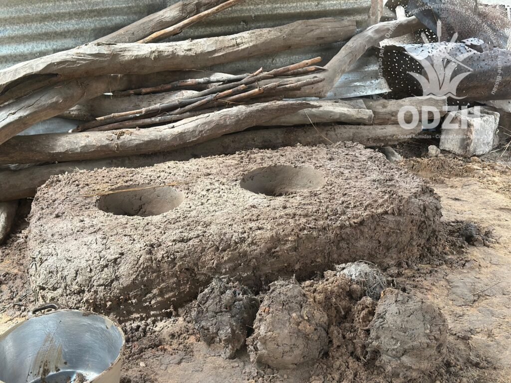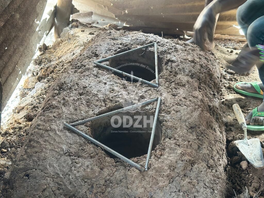 A construção de fogões melhorados visa aumentar eficiência energética, reduzir fumaça e a pressão direta sobre a floresta na Área Comunitária de Mata de Ucó e Bote usando materiais locais como barro, areia e bosta de vaca.